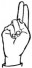 На ћирилици написано АНЂЕЛИЈА АРКУЛА састоји се из 14 слова [?]. Исписано ћириличном једноручном азбуком за глувонеме: